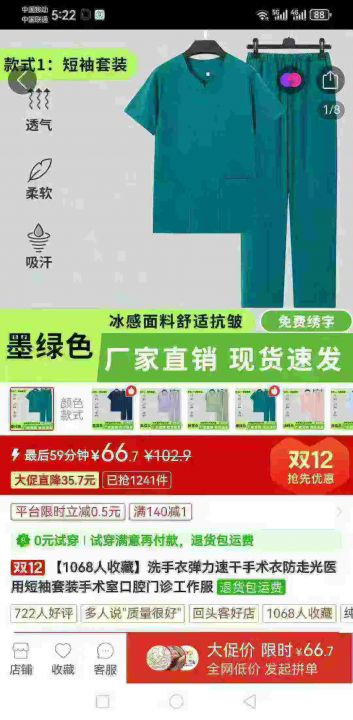 200套医用护士服套装,纯棉,2元一套。 货号:2...