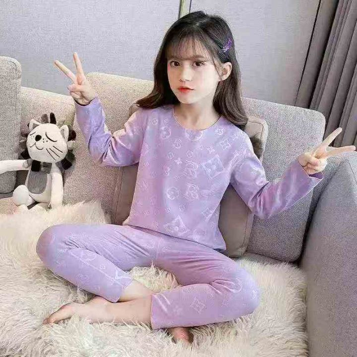 [月亮]:潮童压花满印德绒家居保暖打底套装