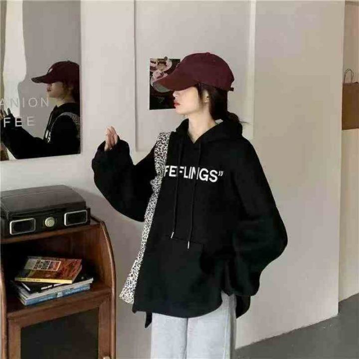 [月亮]:美式潮牌字母刺绣情侣连帽卫衣