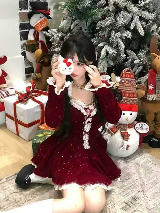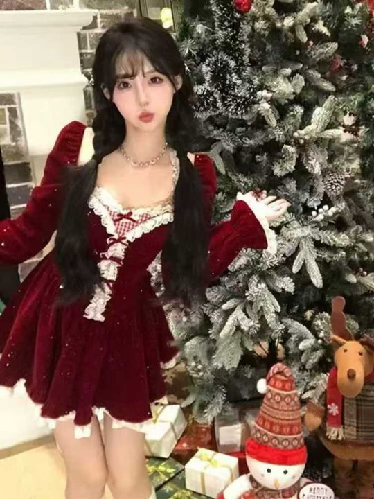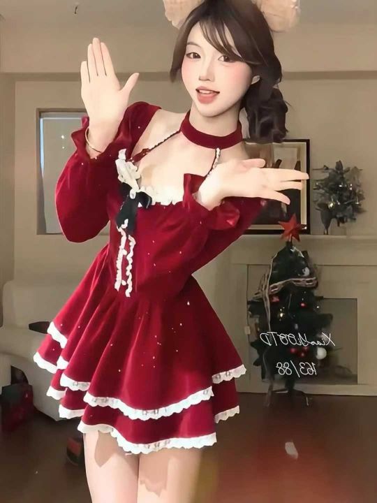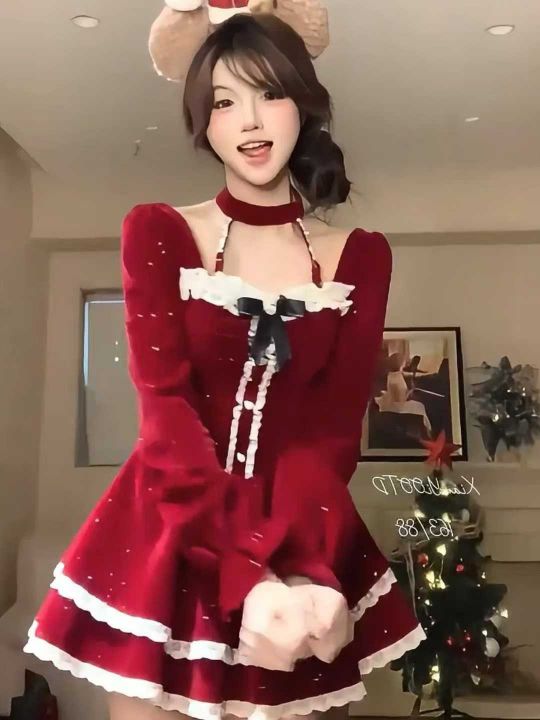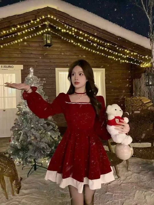 节日氛围感小礼服连衣裙圣诞新年植绒连衣裙~冬季纯欲...