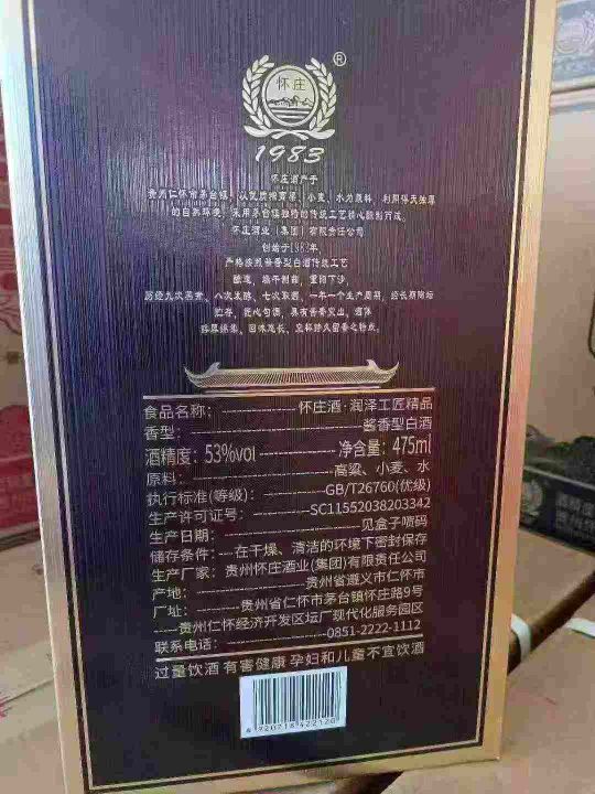 降价了!书本礼盒装怀庄,一箱6瓶,两个颜色,超低价,200元一箱!一箱起发,53度酱香型白酒。 货号:29195