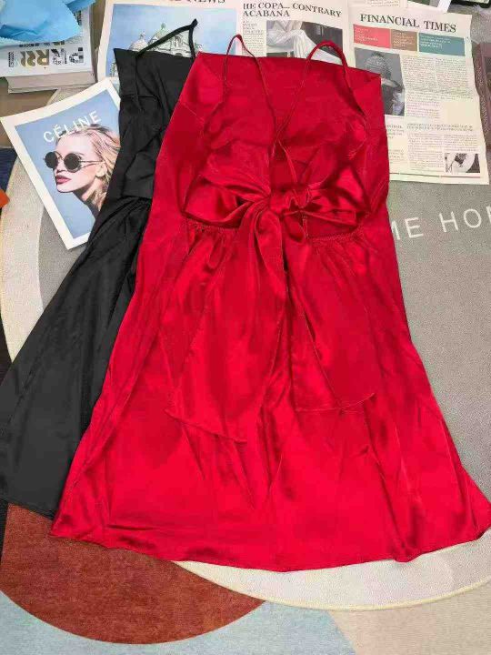 轻奢冰丝性感荡领露背后腰系蝴蝶结款,整款2色,独立...