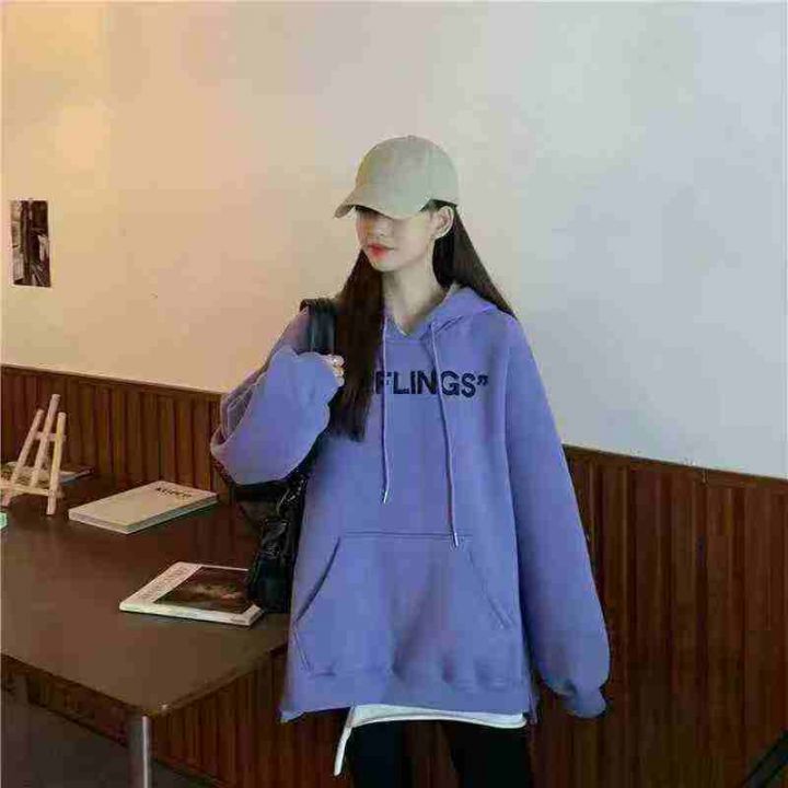 [月亮]:美式潮牌字母刺绣情侣连帽卫衣