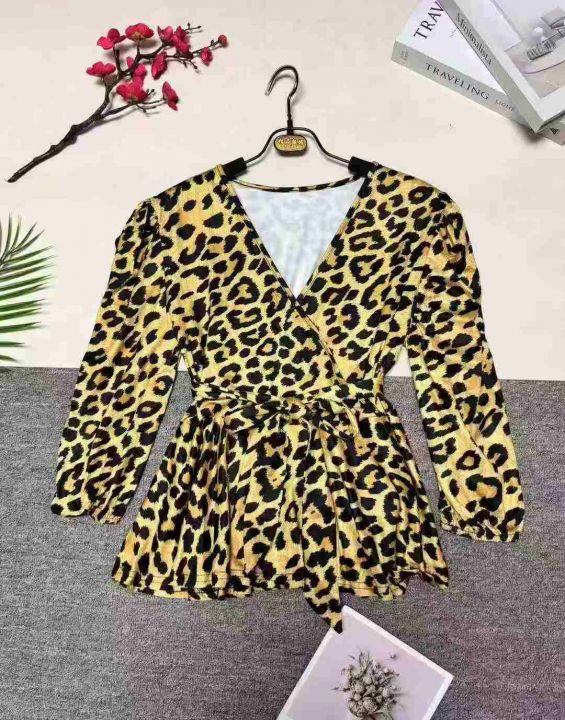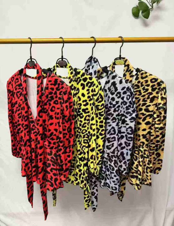 时尚豹纹印花女式上衣,整款四色,收腰设计,数量253件,码数S-XL,品质好,有独立包装。