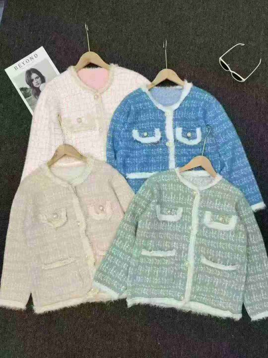 春秋季新款宽松洋气小香风针织毛衣开衫仿水貂外套,小整款,独立包装,均码80-130斤可穿,2100件,全清24.8分货➕1