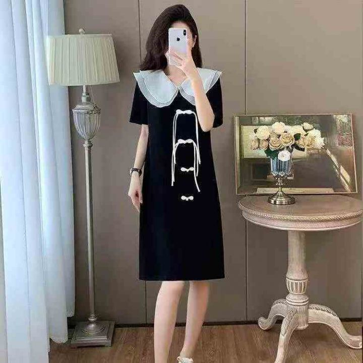 夏季新款新中式复古微胖mm显瘦设计款盘扣赫本风小黑裙,独立包装,码数L--4...