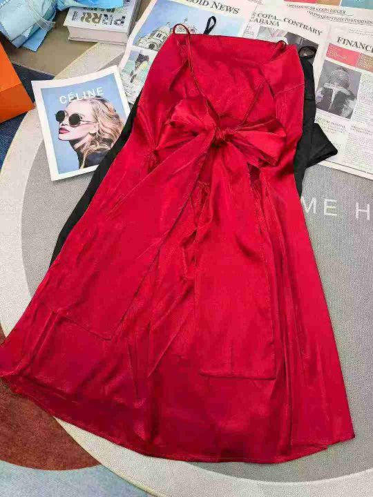 轻奢冰丝性感荡领露背后腰系蝴蝶结款,整款2色,独立...