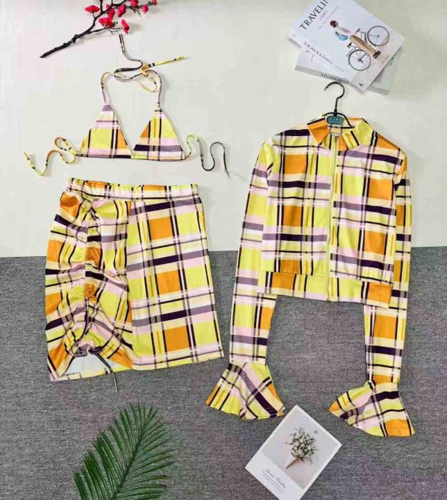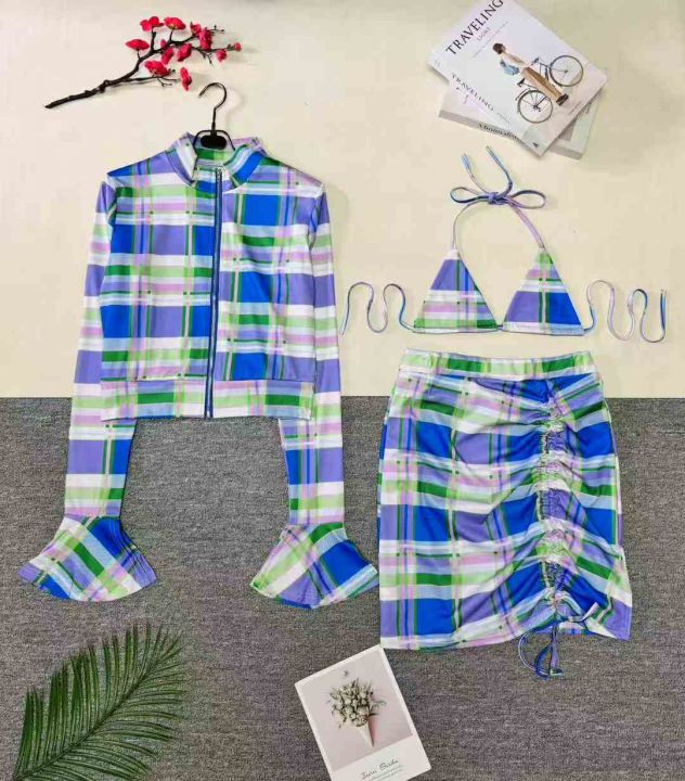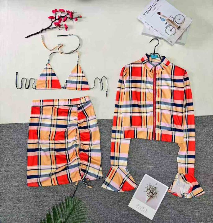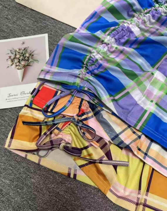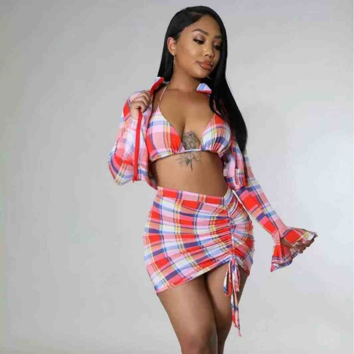 欧美时尚辣妹性感格子三件套,整款三色,数量:168套,码数:S-2XL,品质好,有独立包装。