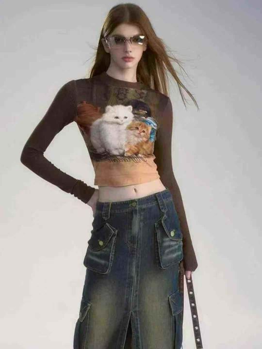 猫咪印花高级感辣妹上衣184件6.8,金丝绒拼接棉袖子,高弹力,手感舒适,修...