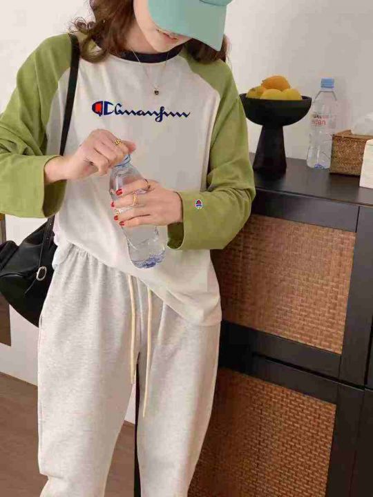 美式潮牌冠军卫衣☕️320件全清9.9元,单款4个色,独立包装,今年流行慵懒风字母拼接撞色插肩卫衣韩版上衣女春秋不加绒卫衣