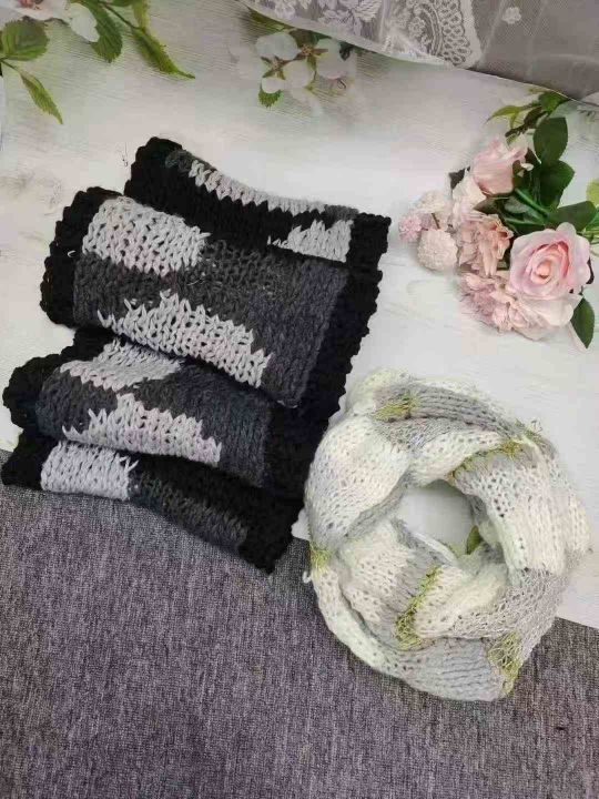 2200条2025秋冬季时尚洋气拼接流苏针织围巾围脖减龄百搭花色百搭户外保暖潮 防水袋包装 1.8清 分货加0.5。 货号:24862