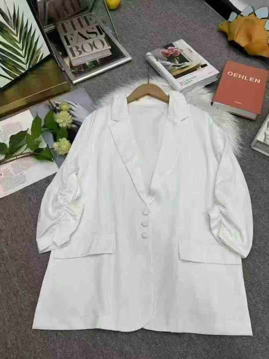 简约气质通勤OL~三粒扣抽褶收腰上衣显瘦七分袖西装外套女秋,107件,码数1-3,独立包装,货品干净,白色为主。(货号:5016#16)