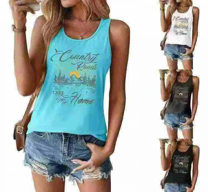 2.9清电商仓回收276件时尚简约夏季印花舒适洋气背心,...