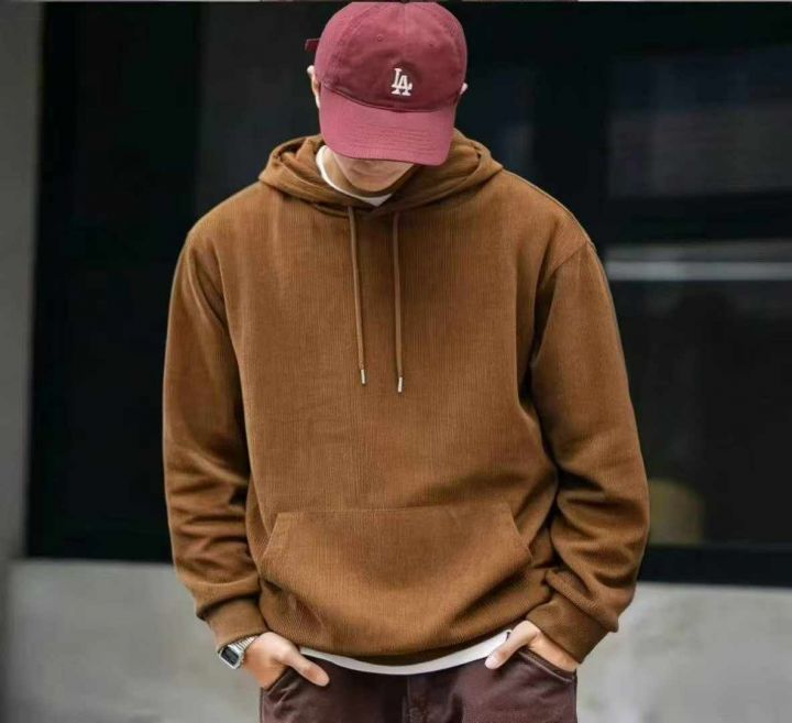 春秋新款灯芯绒净版宽松慵懒风连帽卫衣,独立包装,码...