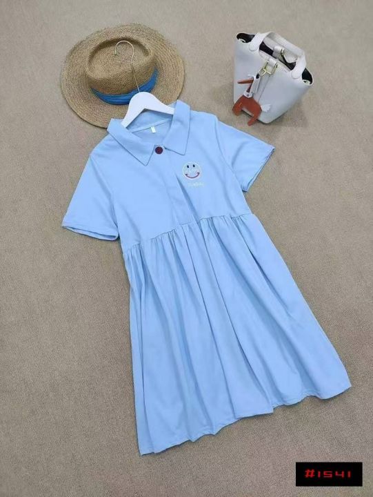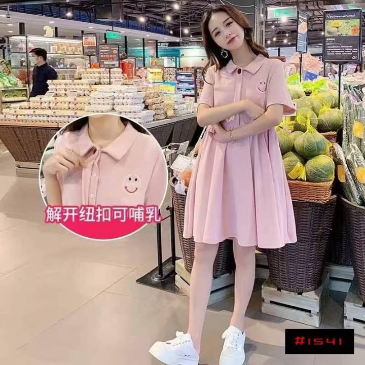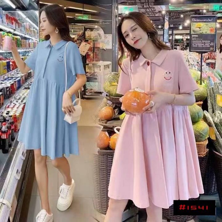 [月亮]:孕妈胖妹宽松遮肚Polo棉质连衣裙