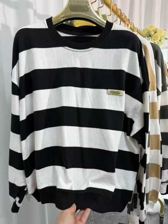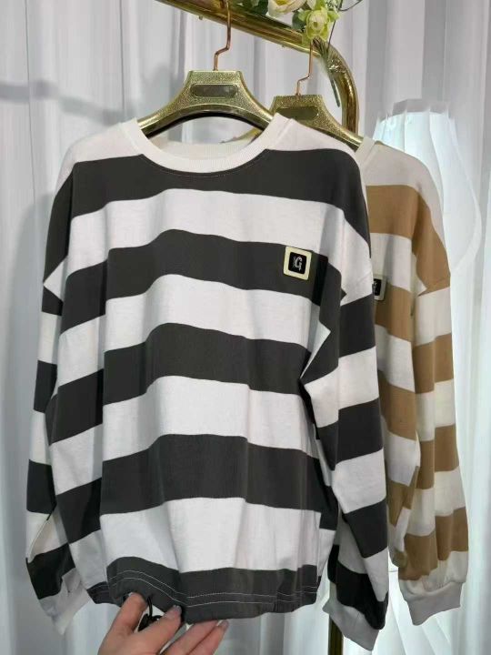 春秋新款大码女装撞色条纹长袖打底外穿上衣,独立包装,码数2-4码,260件左...