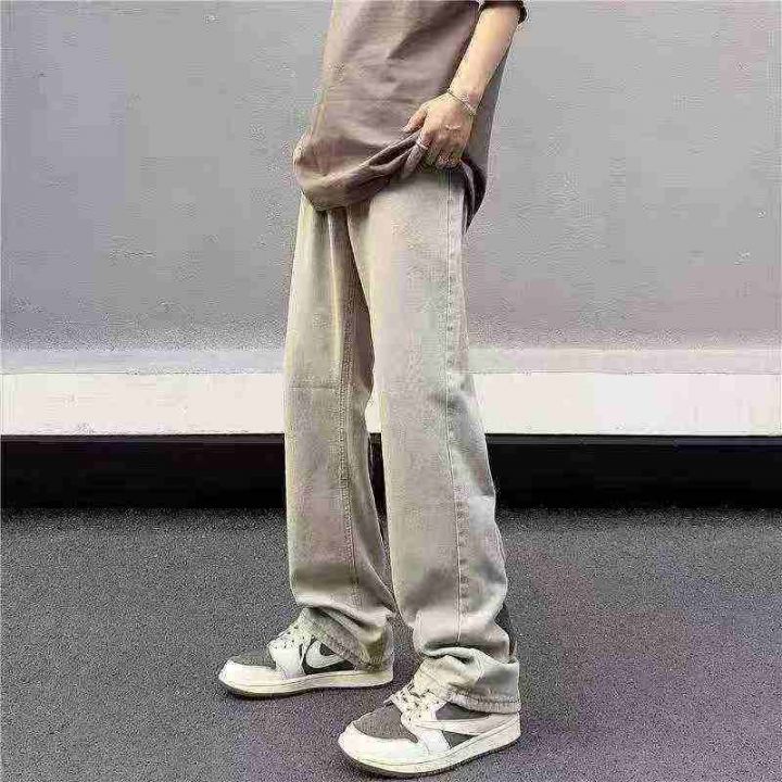 秋冬新款洗水棉网红高街高腰美式复古辣妹直筒黄泥染牛仔阔腿裤,独立包装带...