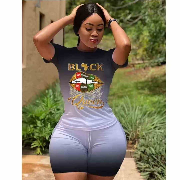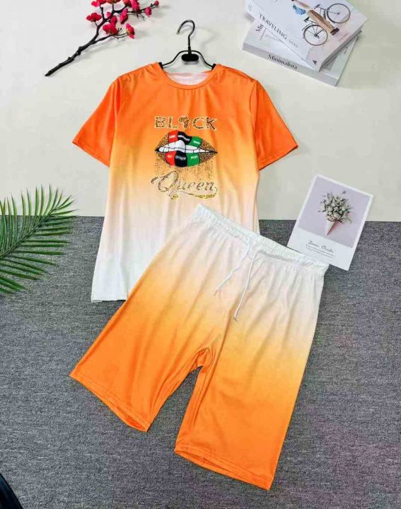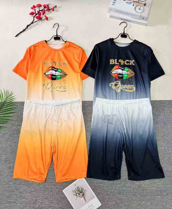 欧美休闲双短渐变色嘴唇印花两件套,整款两色,数量:193套,码数:S-3XL,品质好,有独立包装。