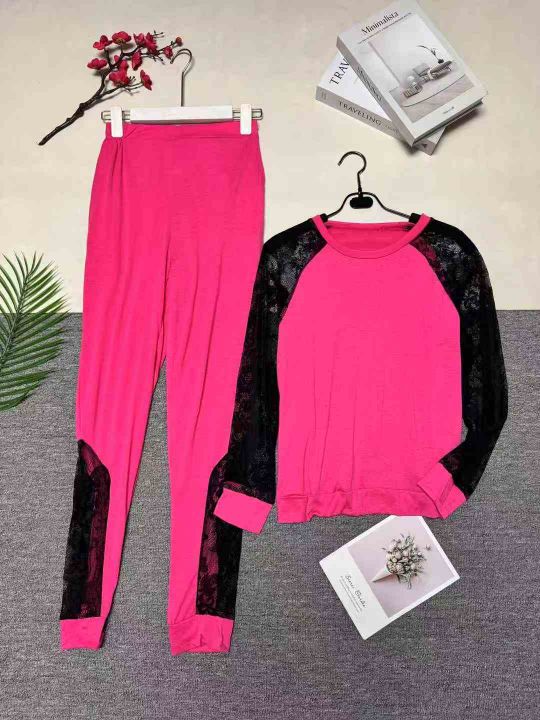 欧美时尚拼接蕾丝双长棉套装,整款四色,数量:180套,码数:S-2XL,品质好,有独立包装。