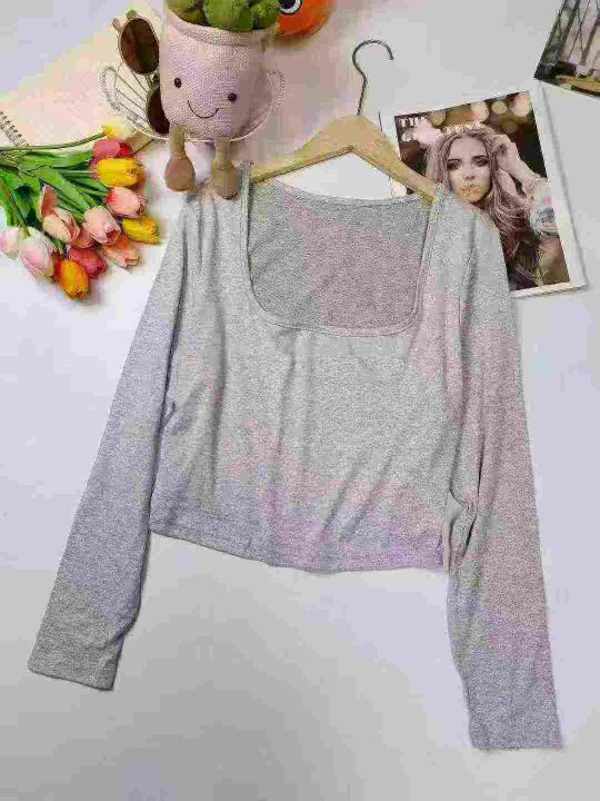 全清4.8元,6180件美式甜辣妹韩版假两件长袖t恤女春夏修身打底衫撞色纯欲显...