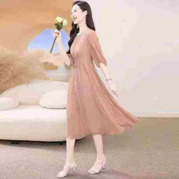 104件真丝 桑蚕丝连衣裙正式场合端庄精致连衣裙女2025新款夏季收腰高级感蓝...