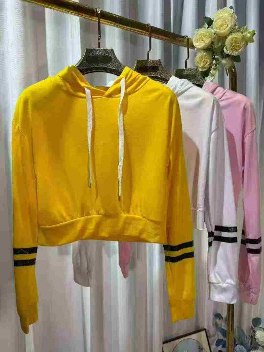 辣妹高腰连帽卫衣,长袖套头连帽高腰卫衣