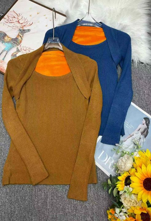 冬季新款法式复古设计款加绒加厚包芯纱套头毛衣,独立...