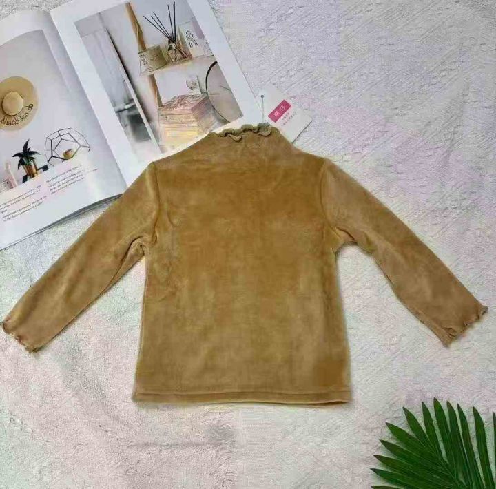 100件左右童装双面绒半高领木耳边打底上衣!尺码90-17...