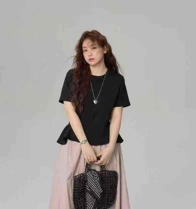 电商仓回收530件高级小众独特设计感花朵下摆大码纯色短袖T恤,码数XL-4XL。面料柔软有弹性,款式好看,有独立包装。分货➕1