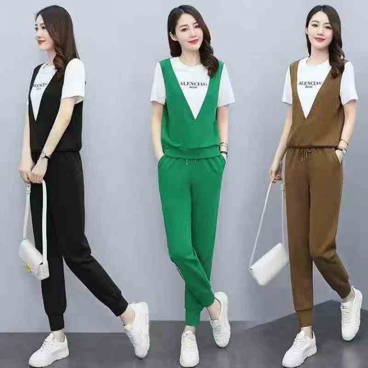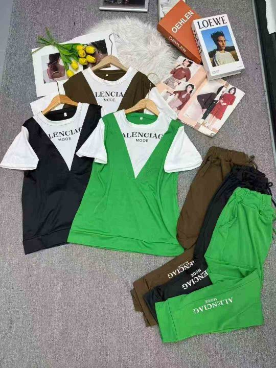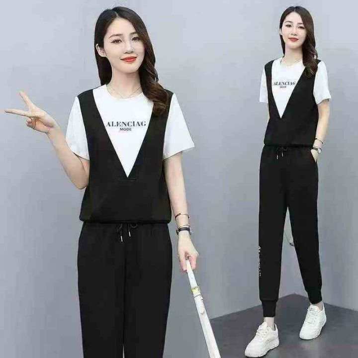 时尚运动服套装女夏季新款洋气减龄显瘦短袖长裤休闲哈伦裤 数量:78套 码数2/6/8码 独立包装货号1112#16