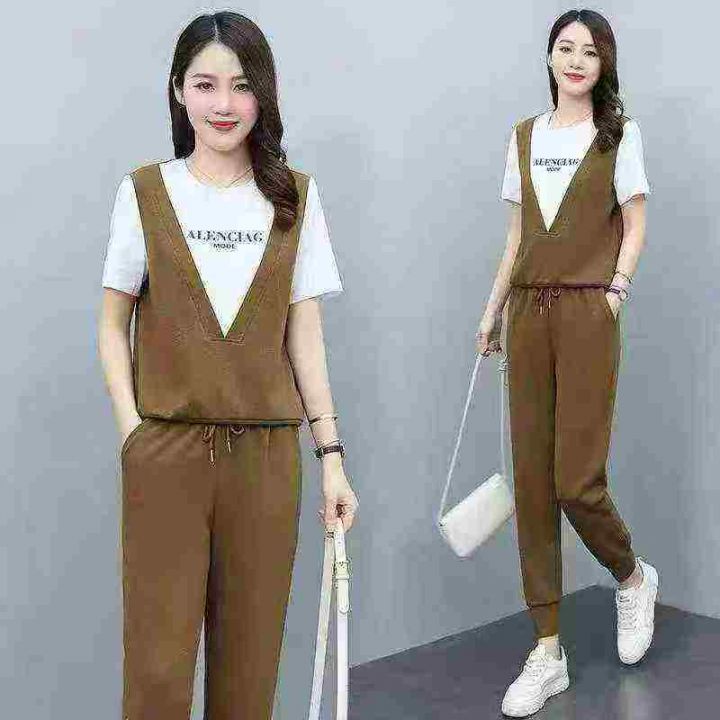时尚运动服套装女夏季新款洋气减龄显瘦短袖长裤休闲哈伦裤 数量:78套 码数2/6/8码 独立包装货号1112#16。 货号:24862