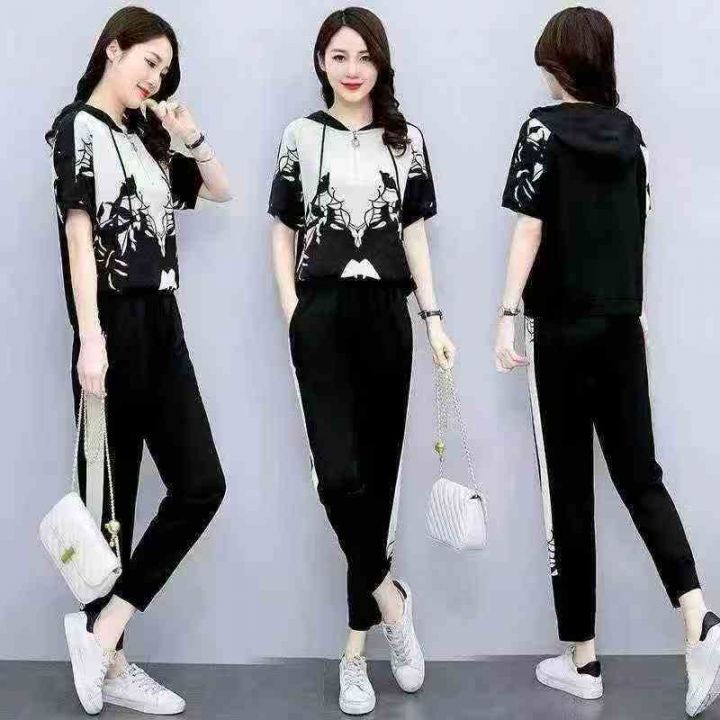 夏季新款休闲运动套装女宽松显瘦气质韩版短袖洋气减龄时尚两件套,独立包装,码数2-5码,数量229套,货号1210#11