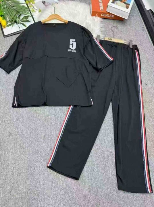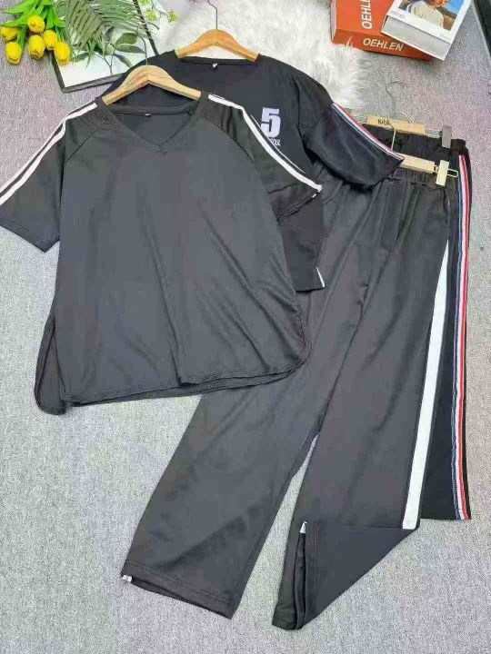 夏天穿搭一整套T恤新款显瘦运动休闲长裤套装,独立包装,两个整款单色,码数2-5 ,数量268 ,货号1210#12