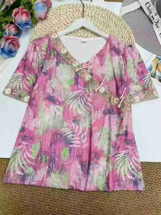 全清4.8元,短袖上衣显瘦百搭遮肉中老年女装妈妈装夏季民族风棉麻短袖,M-4...