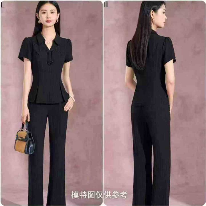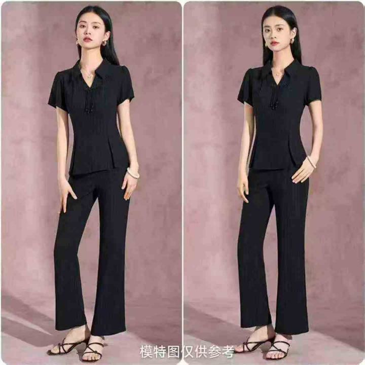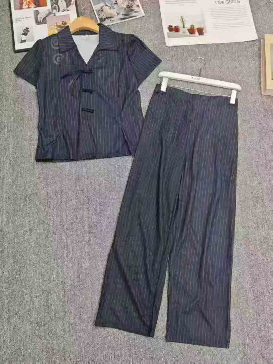 电商仓回收519套气质国风改良新中式条纹翻领短袖长裤套装,码数2-4-6码。面料柔软有弹力,款式新颖,货品干净,有独立包装,分货➕0.5