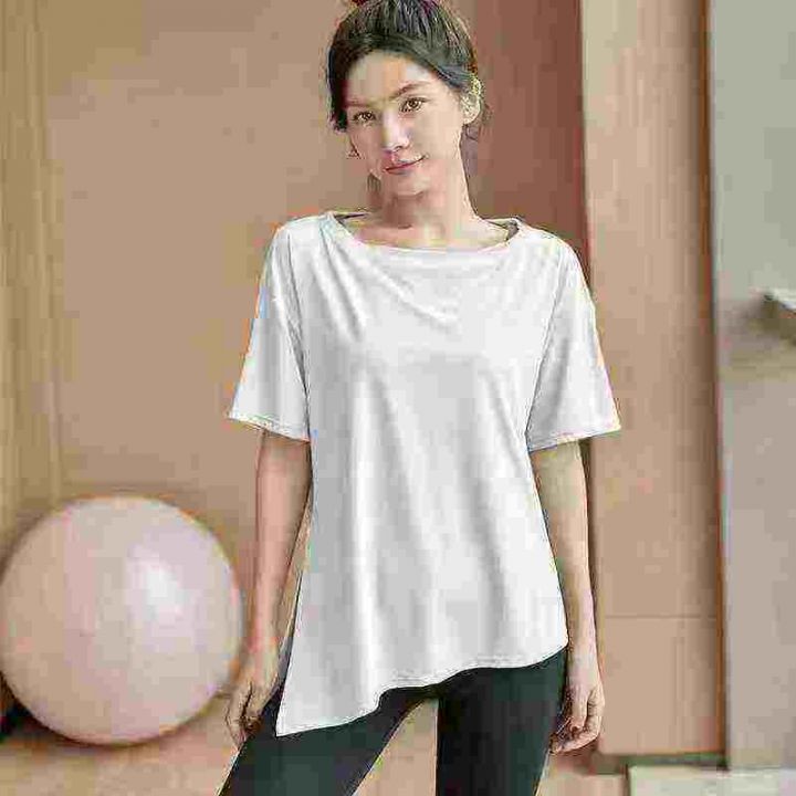 全清3.8元天猫在售款300件左右夏季薄款运动宽松下摆开叉不规则瑜伽服短袖T...