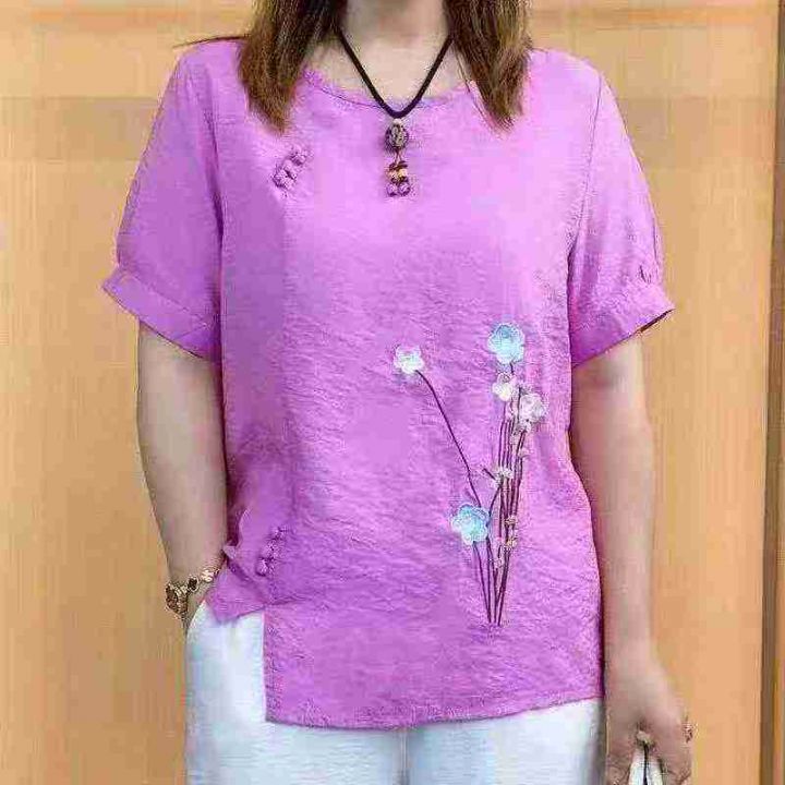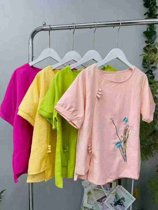 棉麻重工绣花复古短袖衫 ,数量: 86件,码数:2码-6码相当于M-L-XL-2XL,有独立包装,4.5元清。 货号:24862