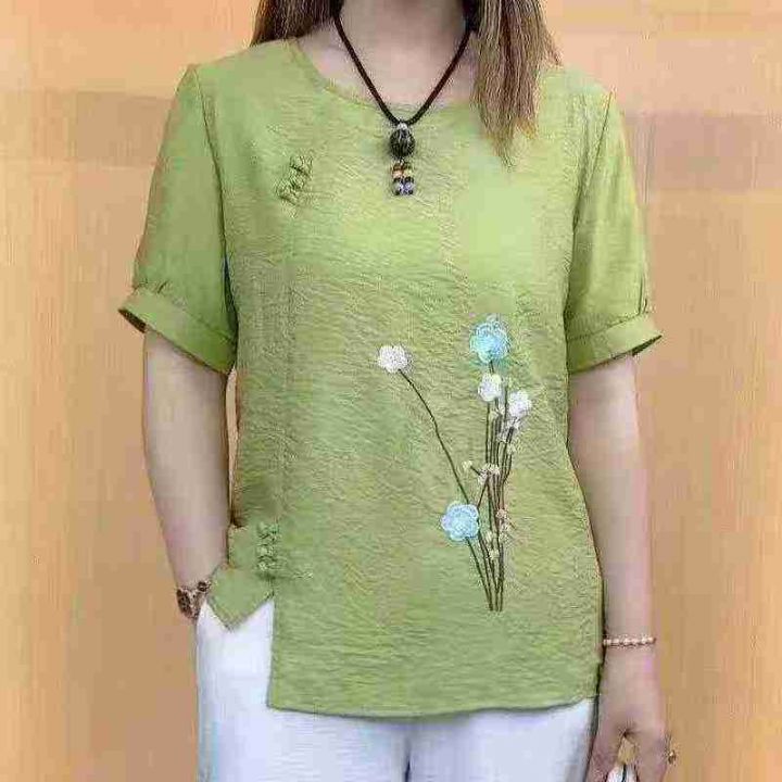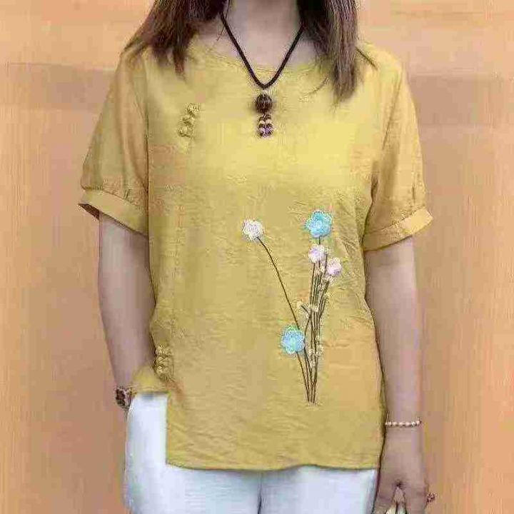 棉麻重工绣花复古短袖衫 ,数量: 86件,码数:2码-6...