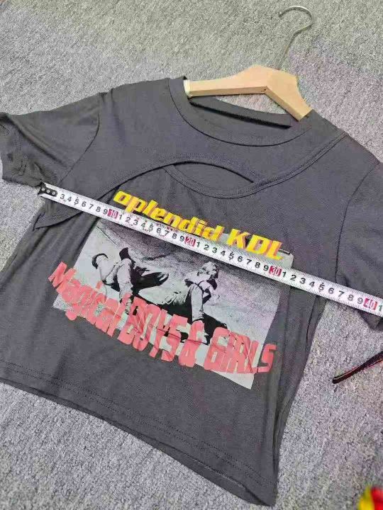 4.5清电商仓回收192件美式复古辣妹镂空印花设计感短袖...