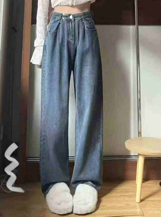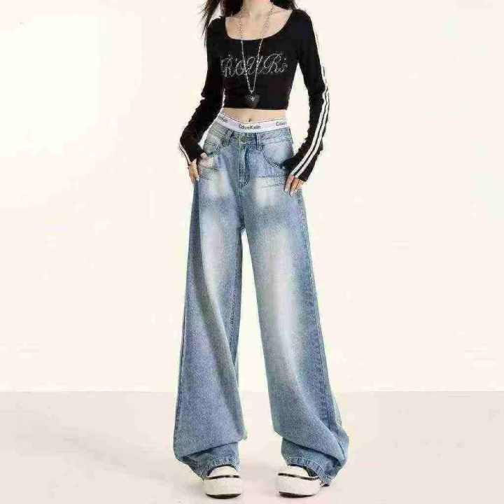 春秋新款洗水棉网红爆款大阔腿牛仔长裤,独立包装带吊...
