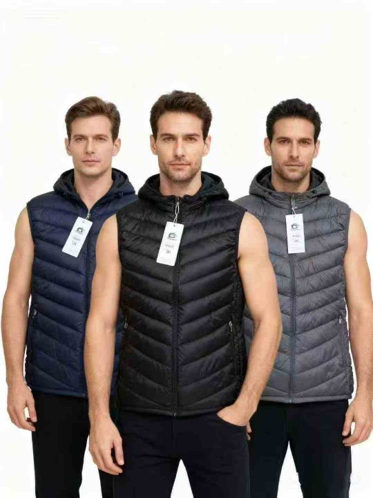 600件左右男装连帽马甲,4XL-7XL码,加绒,口袋拉链,黑,宝蓝,灰色,100件23.8元/件。 货号:24862