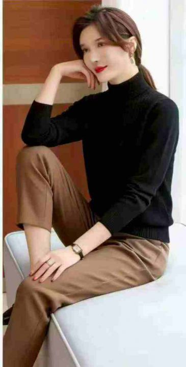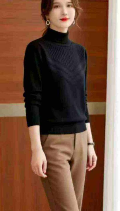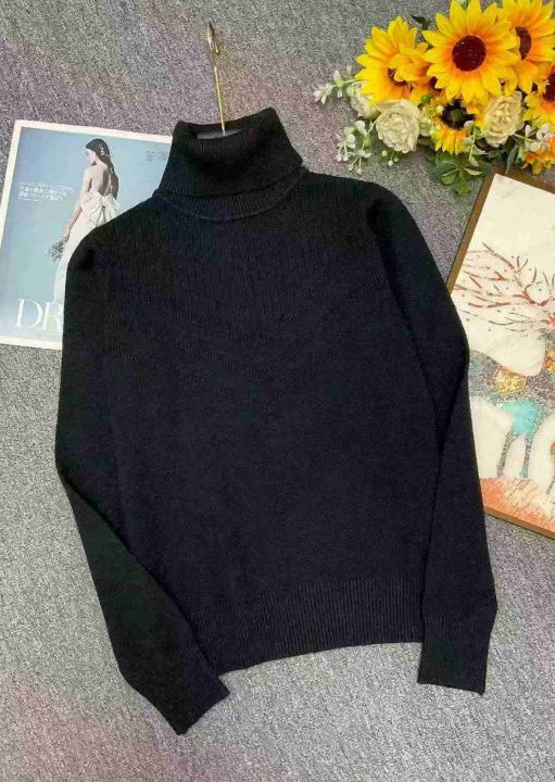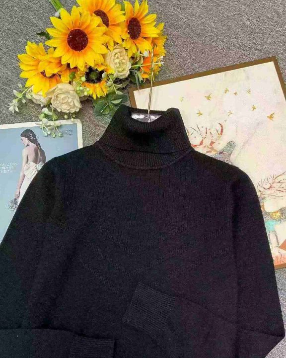 冬季新款复古法式宽松百搭暗花设计款高领套头毛衣,独...