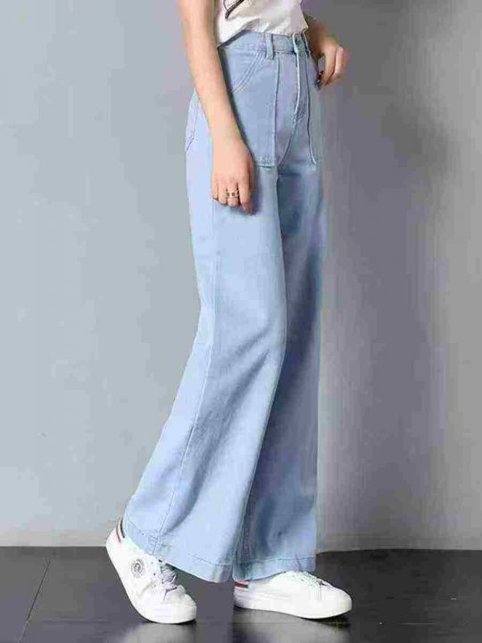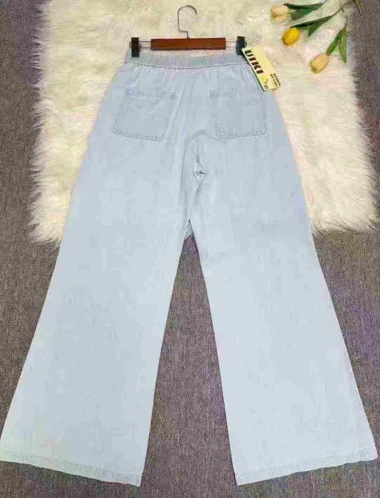 品牌UIKI女士棉麻裤腿加长牛仔宽松阔腿裤300条,黑白...
