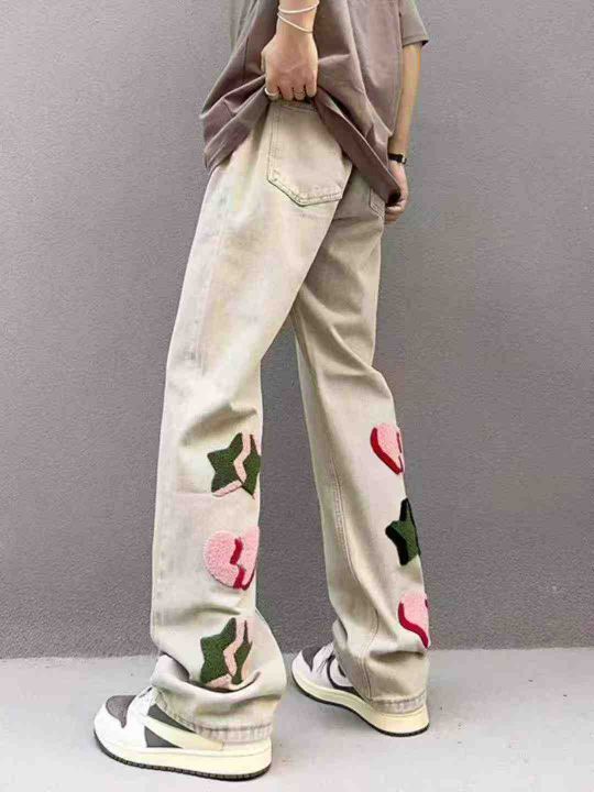 春秋新款国潮美式高街潮牌黄泥染星星植绒刺绣男士小众直筒松紧腰牛仔裤,独立包装带吊牌,码数M-3XL码,170件左右,全清8.8元超低价秒杀!。 货号:24862