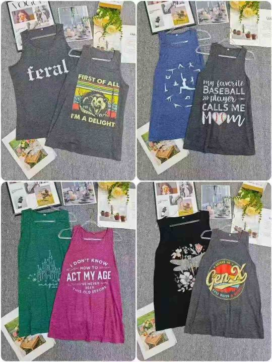 电商仓回收1600件韩系休闲夏季靓妹卡通印花背心,码数S-2XL。面料柔软有弹性,舒适好穿,有独立包装。分货➕0.5