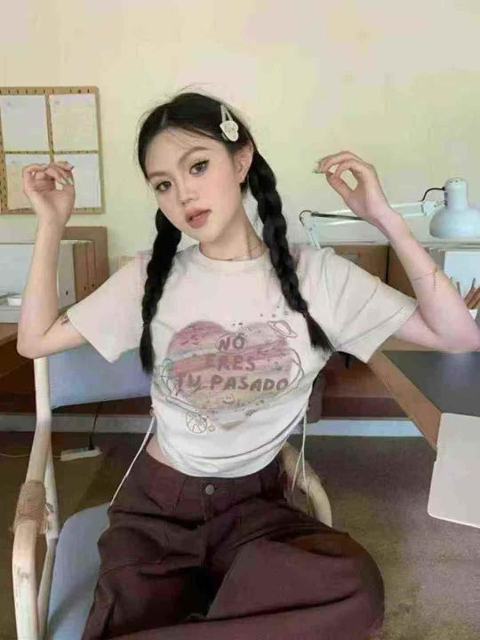 广州十三行档口货3000件夏季网红爆款纯棉辣妹抽绳短t,可穿90-130斤,面料柔软舒适有弹力,质量质感款式都超级好,独立包装带吊牌。分货加一