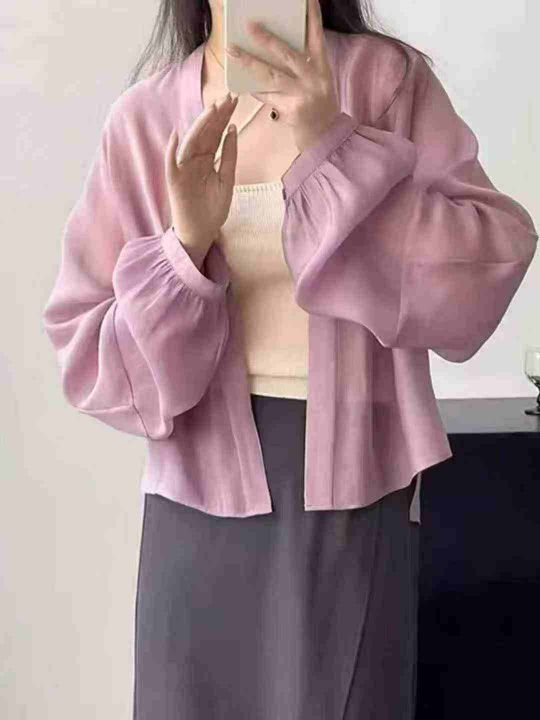 5.8元清复古雪纺开衫空调衫防晒衫,百搭神器,灯笼加长袖设计师款,单款3色...