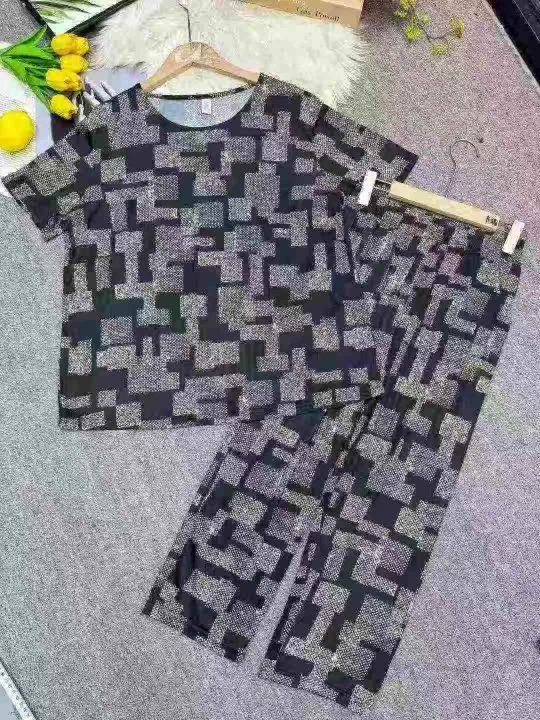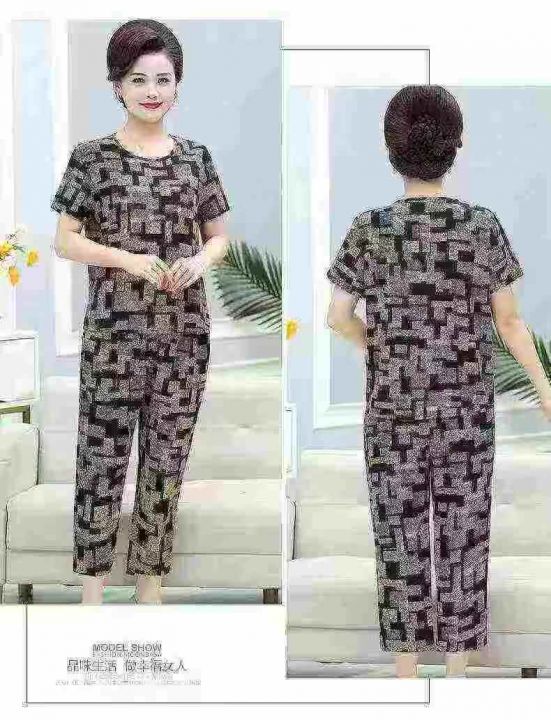 妈妈夏装套装冰丝亲肤凉快舒服可外穿中老年人女款上衣五分裤两件套,整款单色,XL裤长82厘米,码数L-3XL,数量222套,(货号0915#53)