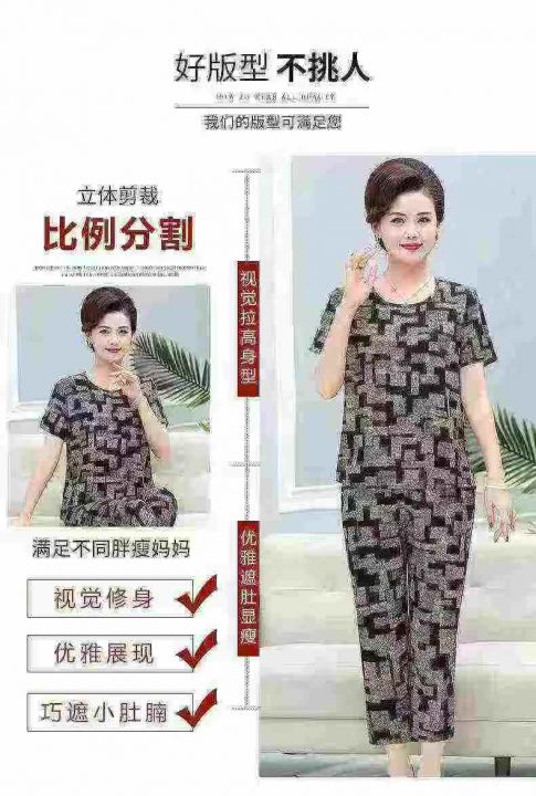 全清价5.9元妈妈夏装套装冰丝亲肤凉快舒服可外穿中老...