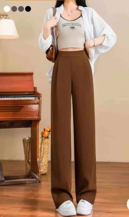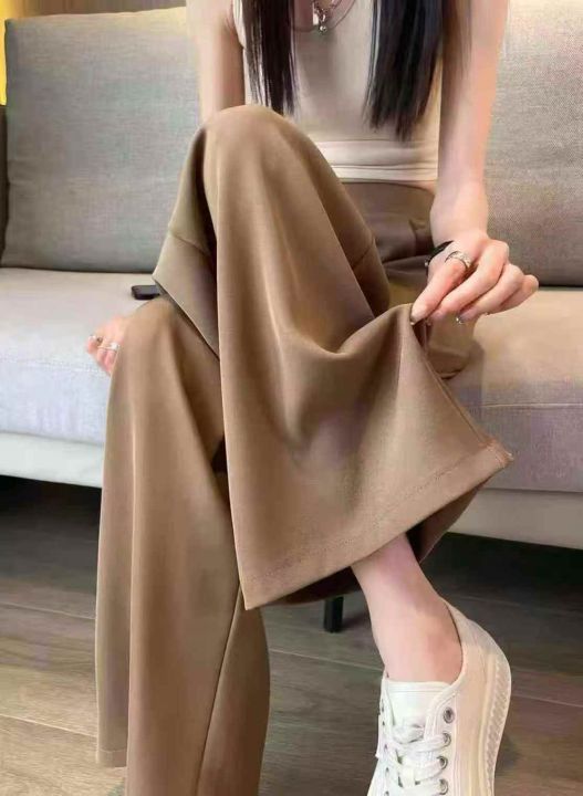 卡其色窄版阔腿裤女早春季2025新款高腰显瘦西装裤休闲垂感直筒裤,140条,(型号5019#18)均码,独立包装,超大弹力裤腰。